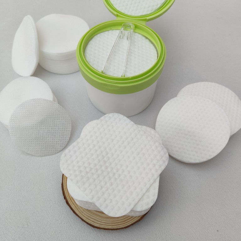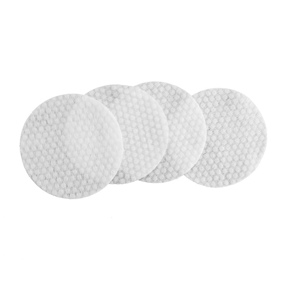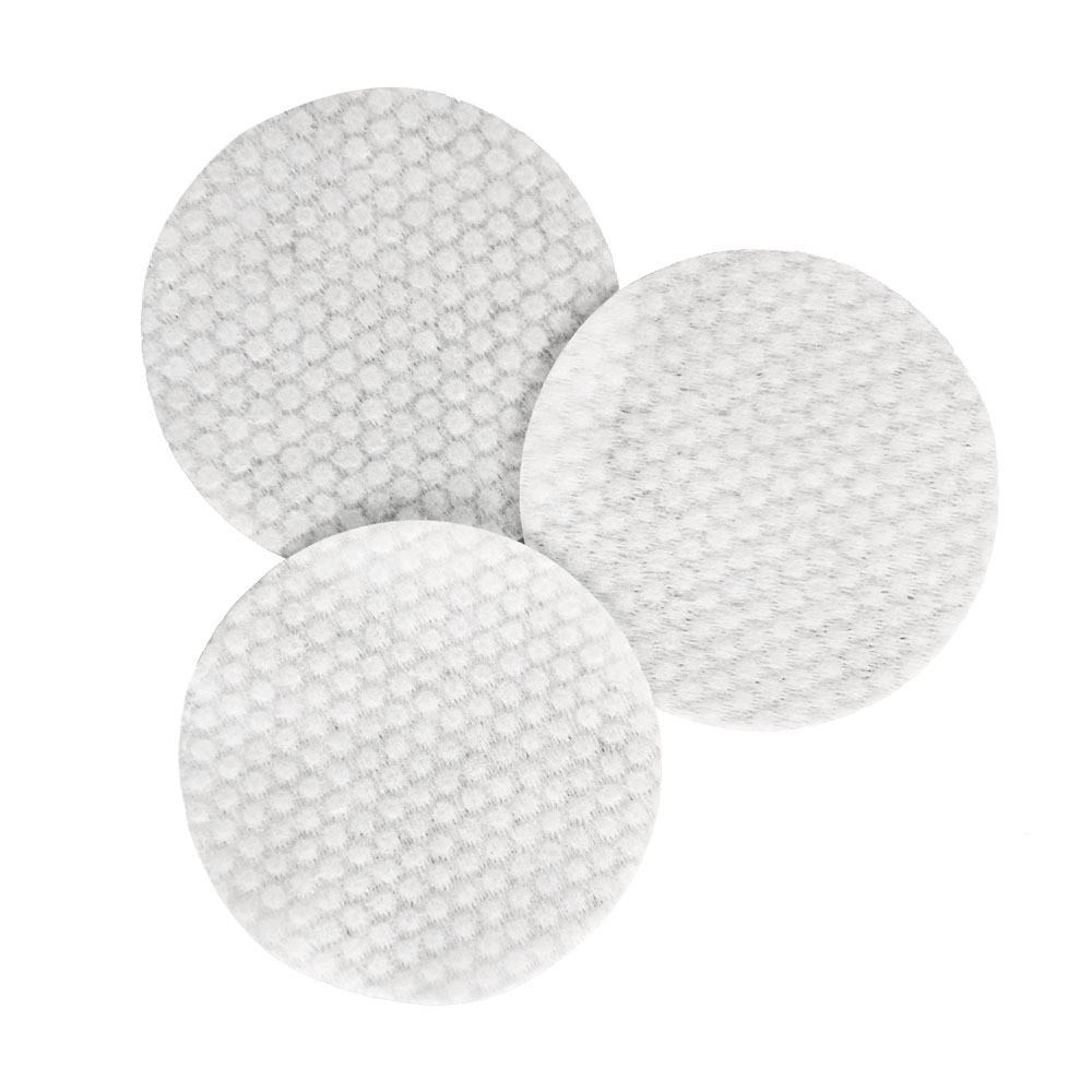 Those are soft cosmetic wipe with small buble on surface. It is disposable and durable. No lint. Eco-friendly. No harm to skin. 7.5cm diameter round pad. White. Also, can accept oem service.