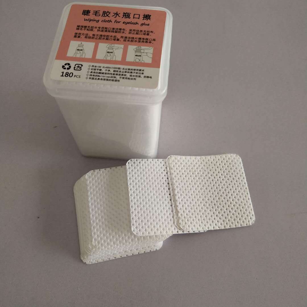 Gridded bottle cap cleaning cloth for eyelash glue, made of high-quality non-woven fabric, no shedding, no sticking to the bottle. Quick remove residual glue to prevent the bottle cap from clogging. Usage: After each drop of glue, wipe the bottle cap clean with a cleaning cotton pad and then close tightly to extend service life of the glue.